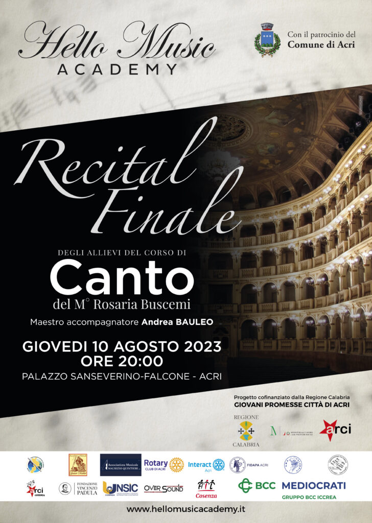 Il presidente della Hello Music Academy, Francesco Spezzano, dà appuntamento alla cittadinanza per giovedì 10 agosto alle ore 20:00 a Palazzo Sanseverino-Falcone per il concerto finale degli allievi.